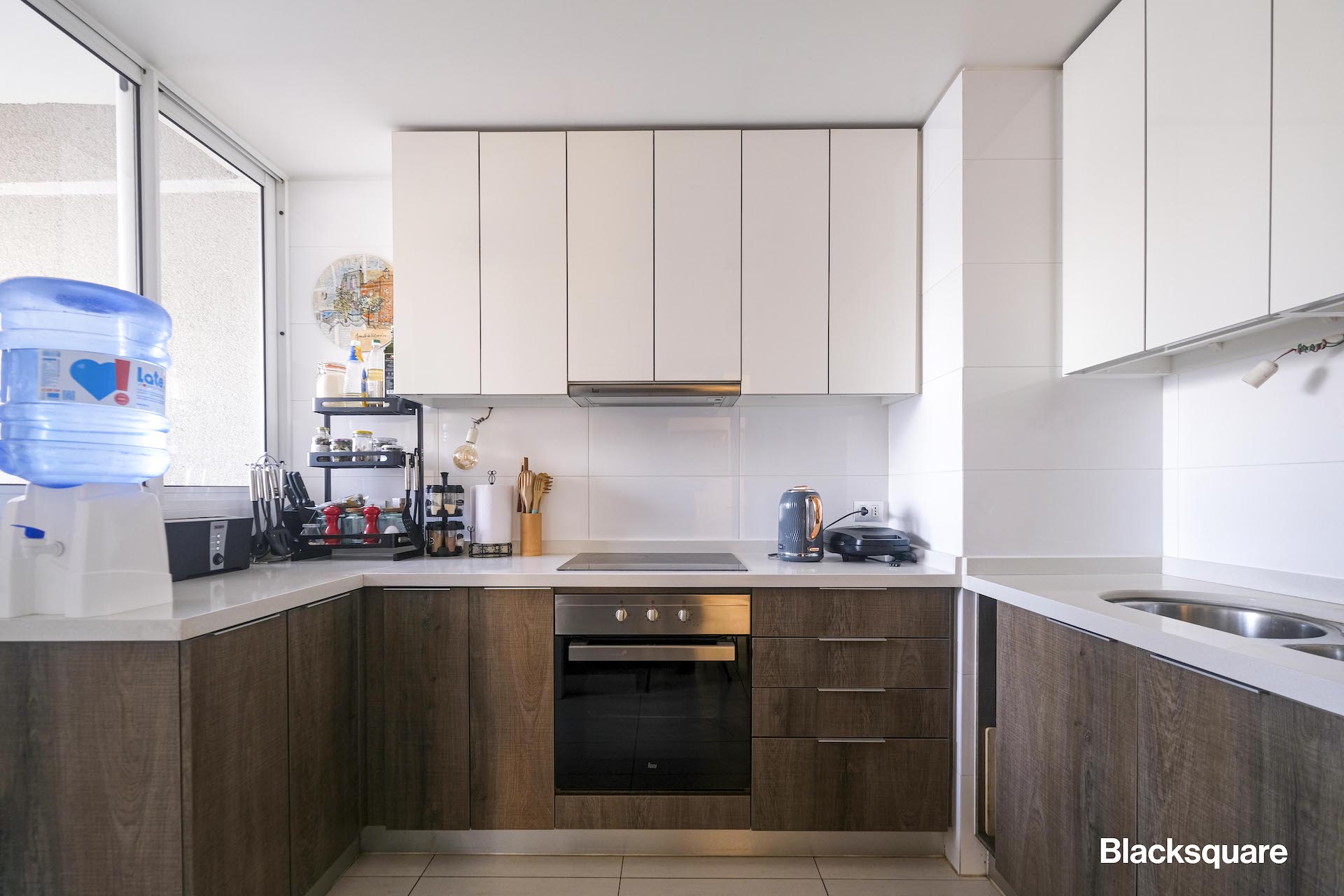 En cuanto a sus terminaciones, tiene piso flotante, vidrios de termopanel y cubiertas de cuarzo en la cocina.