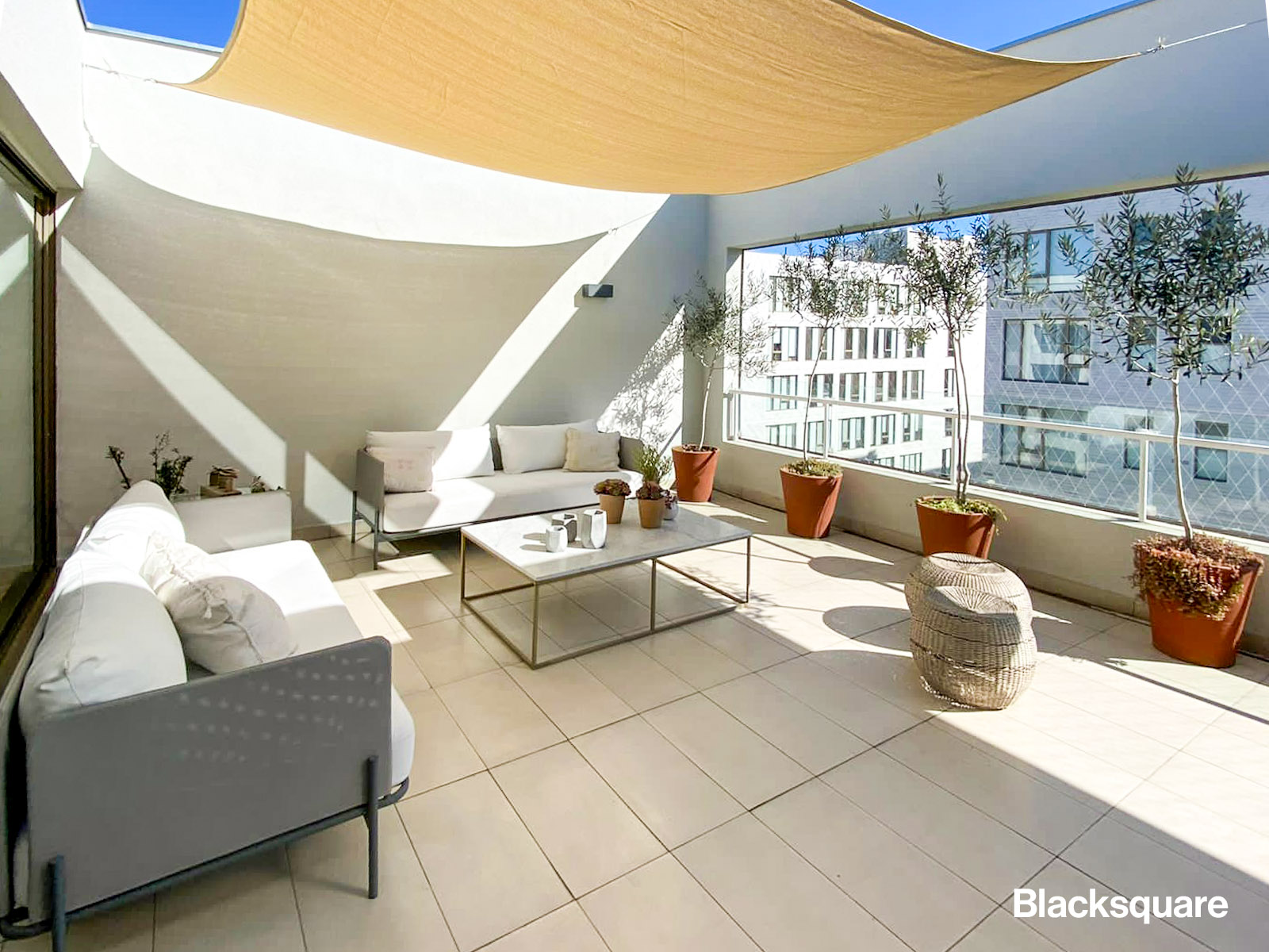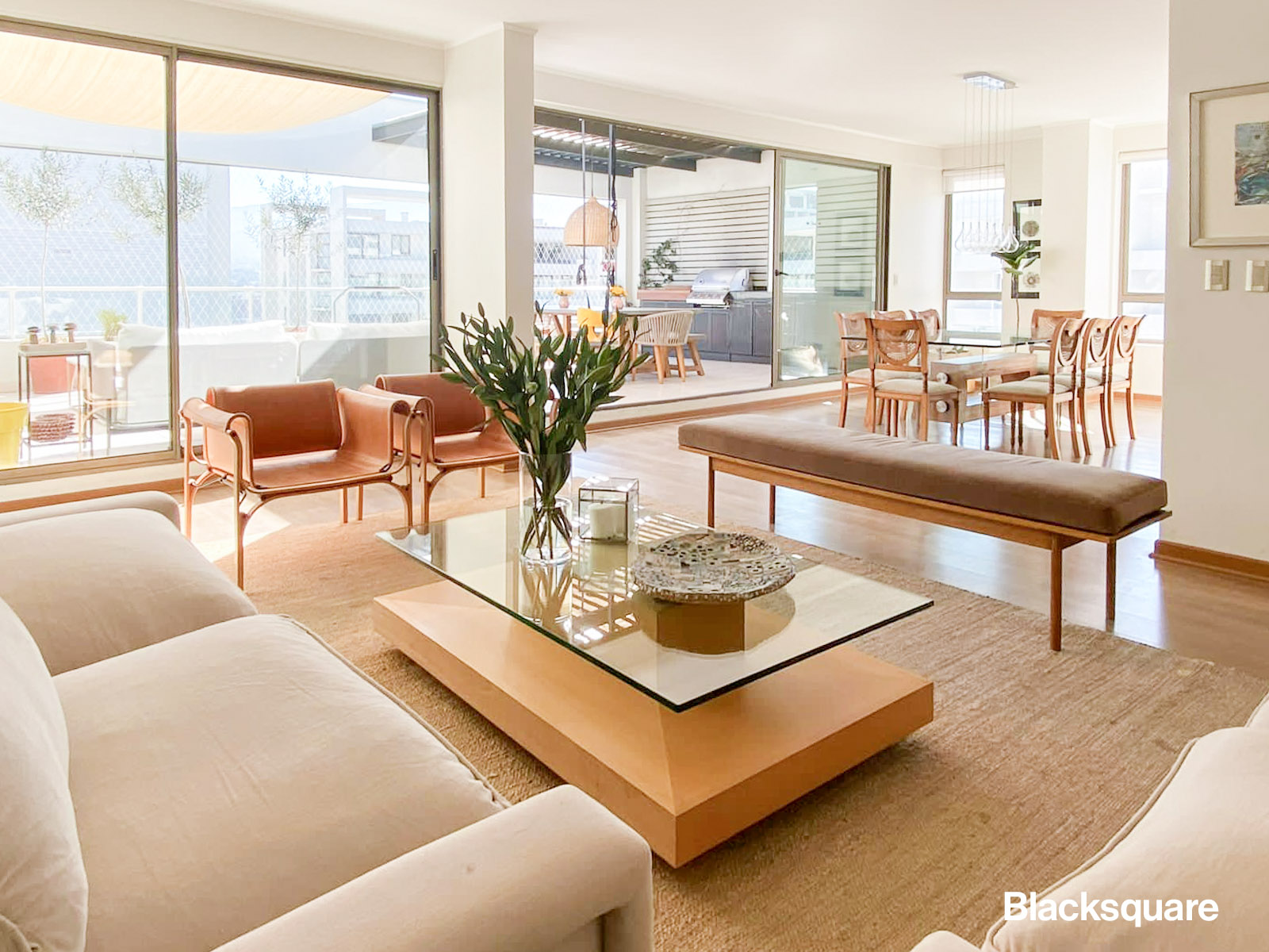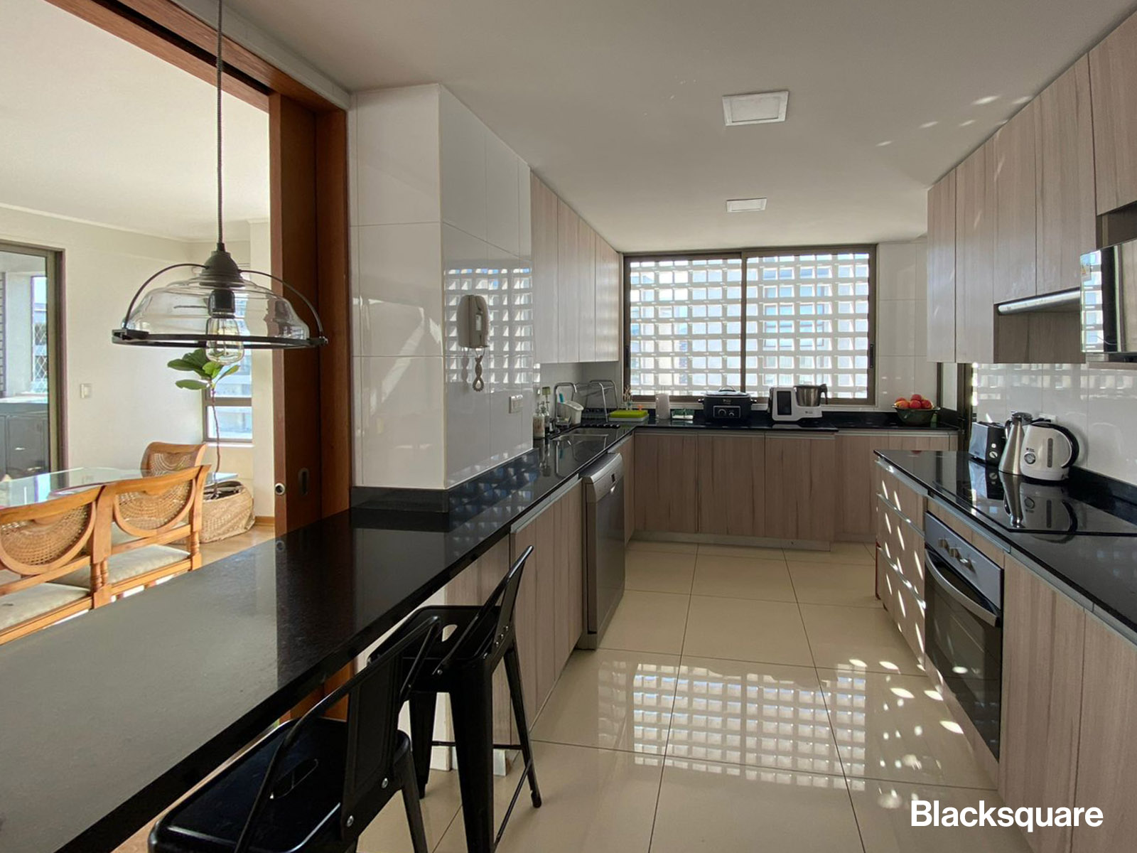 Se ingresa a un amplio hall de acceso, el que nos lleva al living comedor, el que es de una extraordinaria amplitud, luego accedemos a una enorme terraza con orientación nororiente. La cocina semi integrada, está totalmente equipada, con terminaciones de lujo, logia y dormitorio de servicio con su baño.