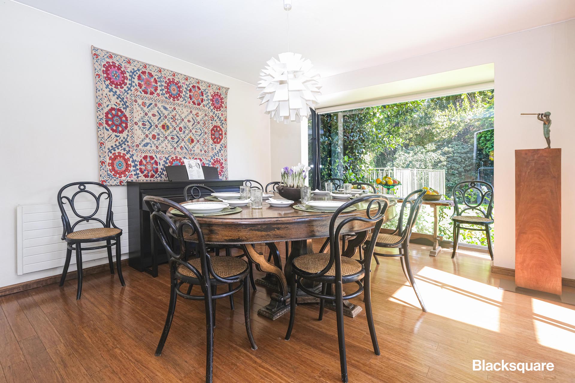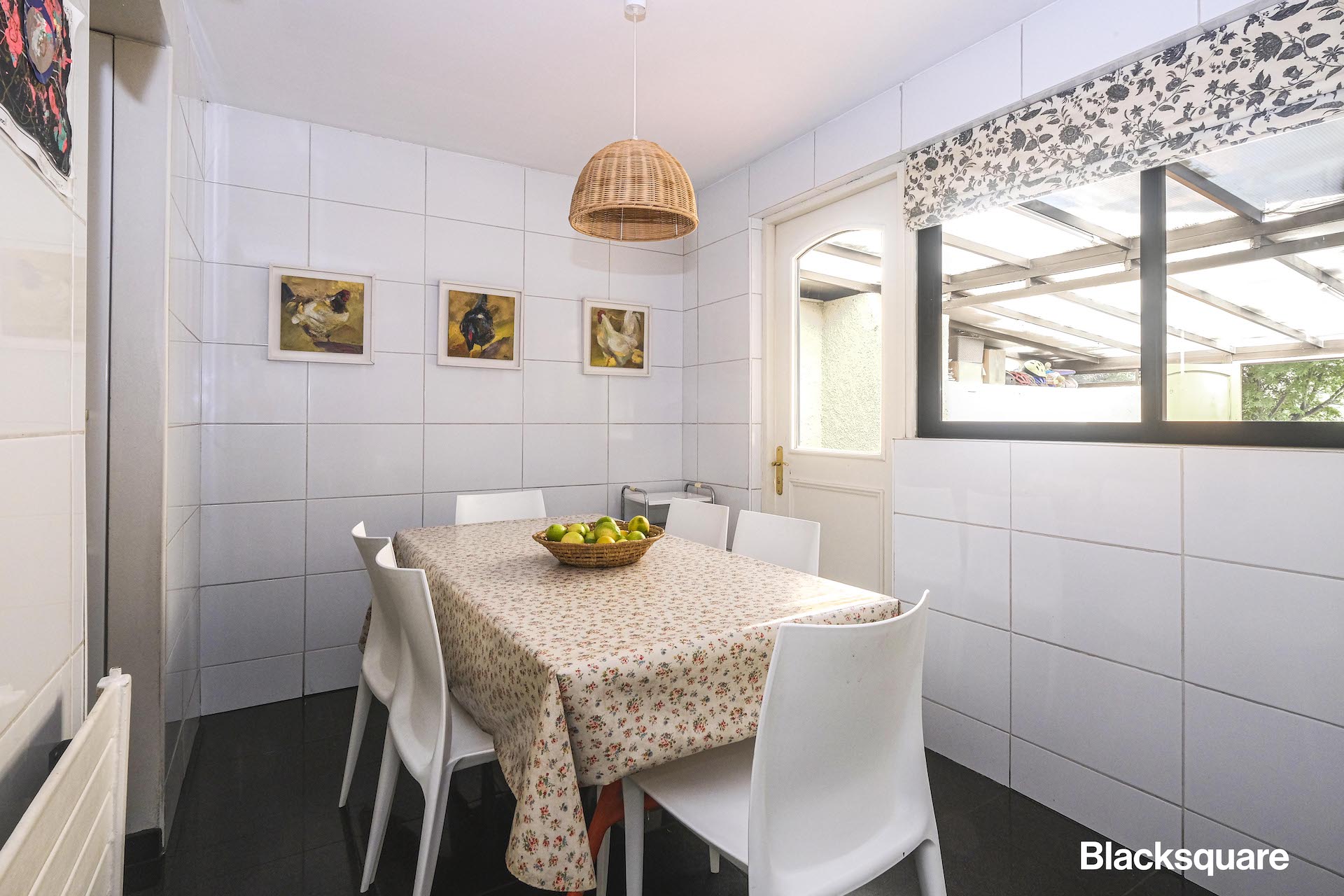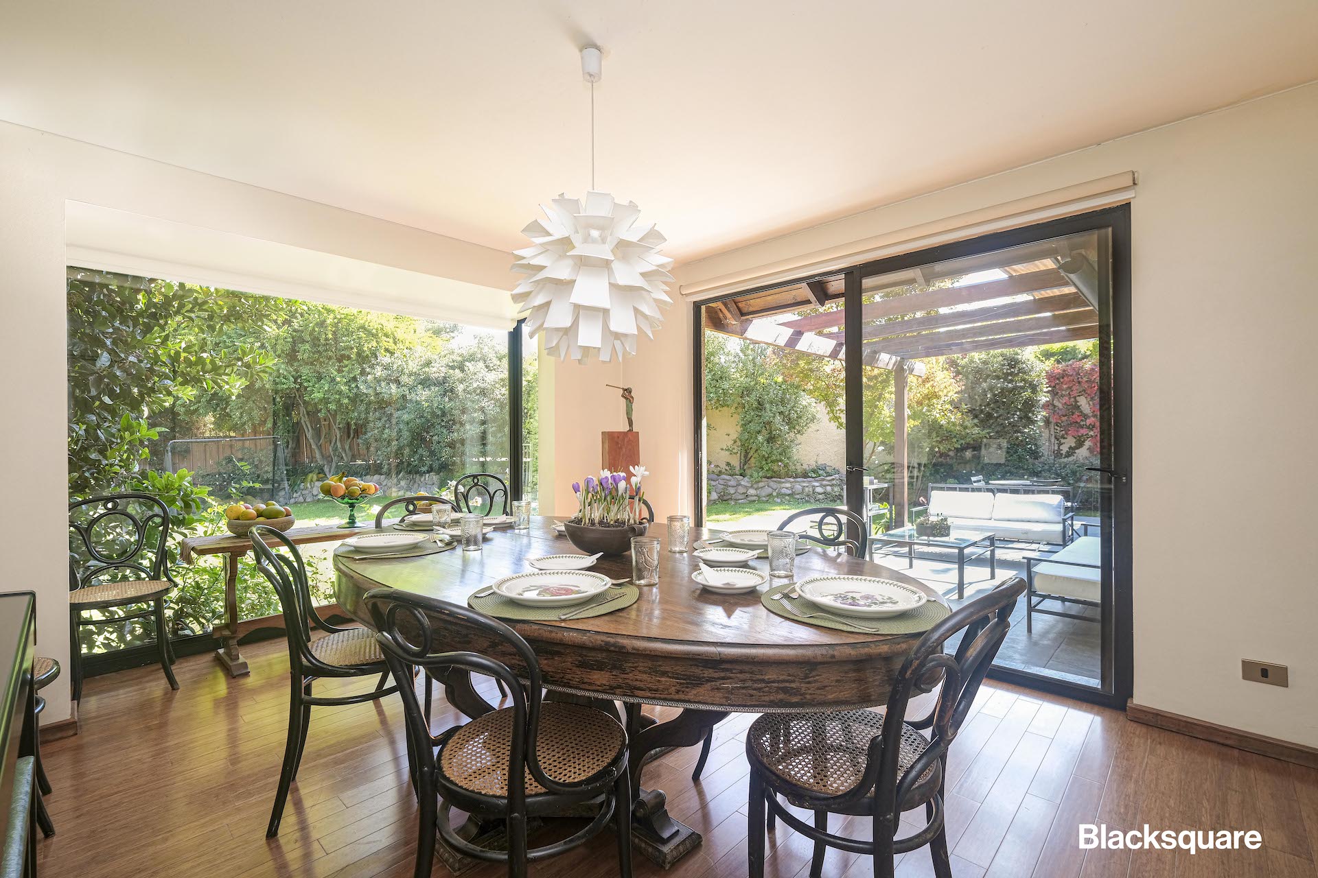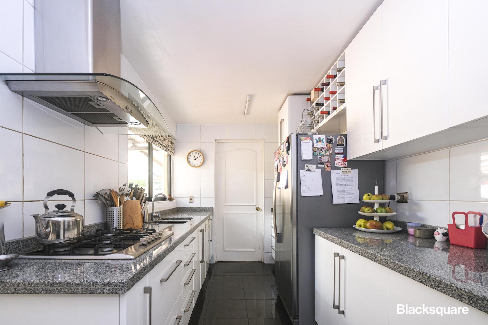 En el primer piso, se accede por un amplio hall de entrada, para luego encontrarse con el living y comedor separados, ambos con salida a la terraza, la que conecta con el jardín y la piscina. Tanto el comedor como el hall de entrada tienen acceso a la cocina, la que está totalmente equipada, con cubiertas de granito, comedor de diario y dormitorio de servicio con su baño.