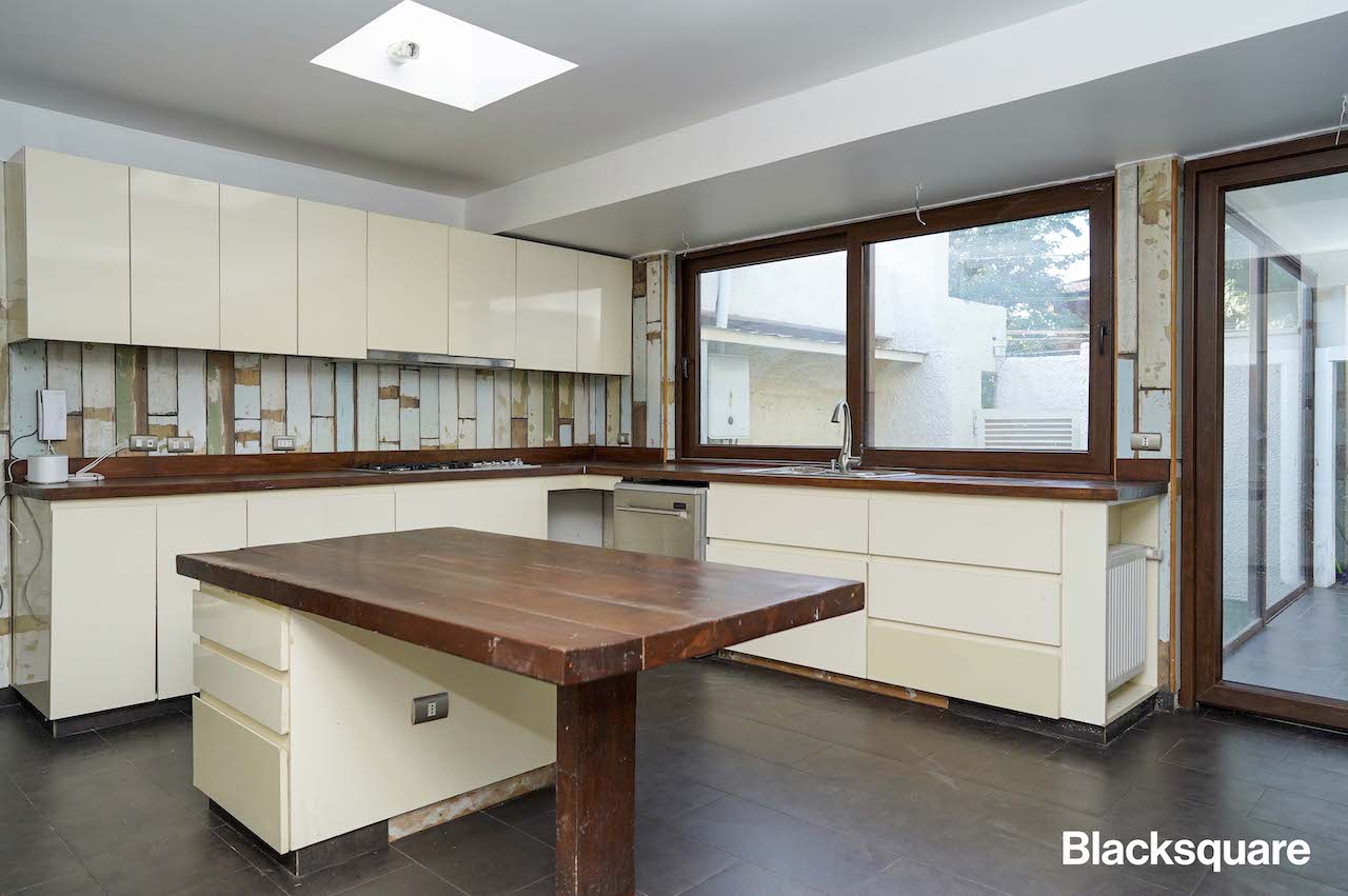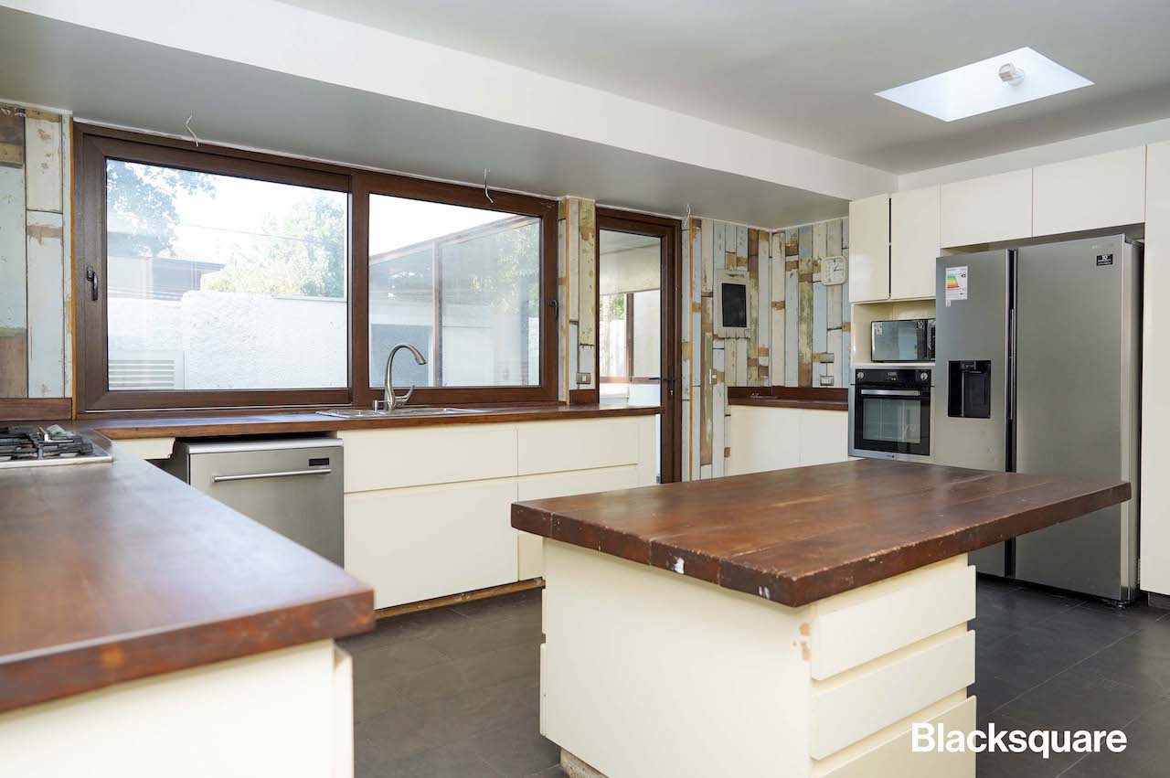 Contiguo al quincho, está la cocina, totalmente equipada con amplios mesones y espacios para compartir en familia. A continuación está el dormitorio de servicio con su baño y el lavadero.
