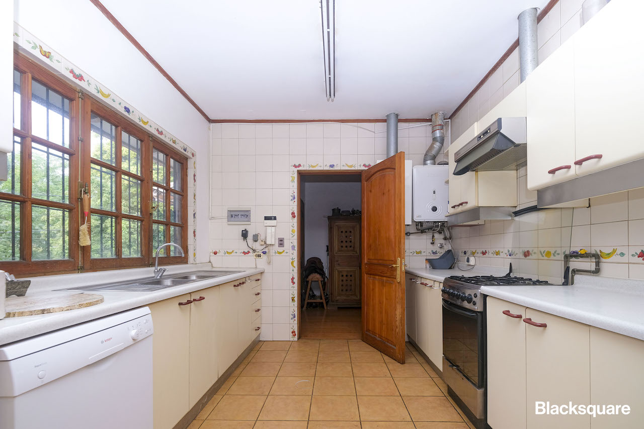 La cocina, de un gran tamaño, tiene comedor de diario, logia y dormitorio de servicio con su baño.