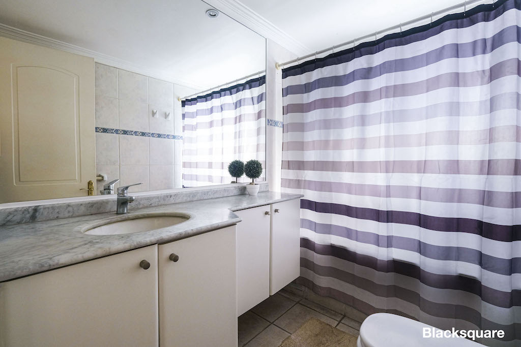 El amplio departamento cuenta con un hall de acceso que lleva al gran living comedor con salida a la terraza y una impresionante vista al parque. Además, tiene baño de visitas. Contiguo hay una cómoda sala de estar, la que comparte la misma terraza y por consiguiente la espectacular vista. Luego, nos encontramos con la cocina, totalmente equipada. Además, tiene logia y dormitorio de servicio.