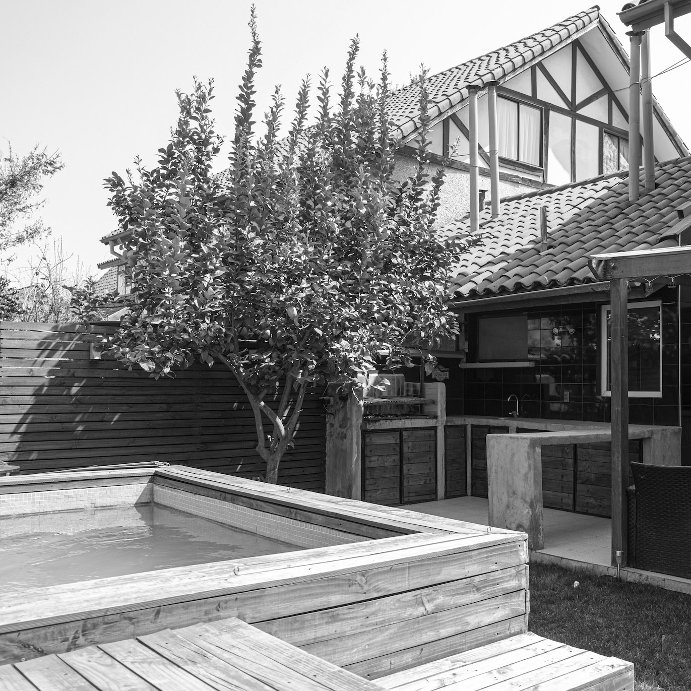 En el primer piso se encuentra un amplio living independiente, una gran cocina americana que se combina con el comedor. Muy destacable es su jardín, el que cuenta con una cómoda terraza, quincho y una piscina con un deck ideal para disfrutarla.