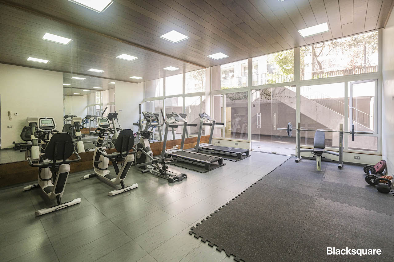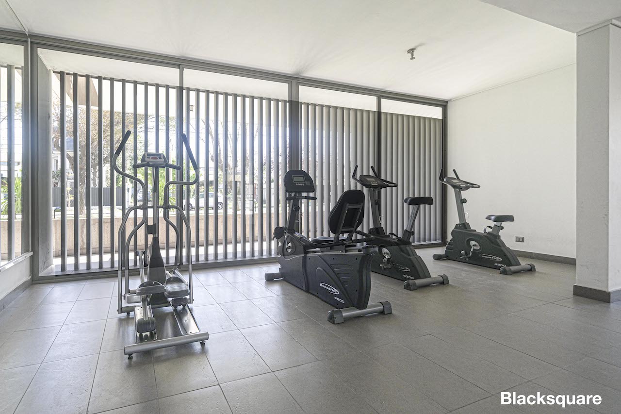 El edificio tiene áreas verdes, sala multiuso, gimnasio y seguridad 24/7.