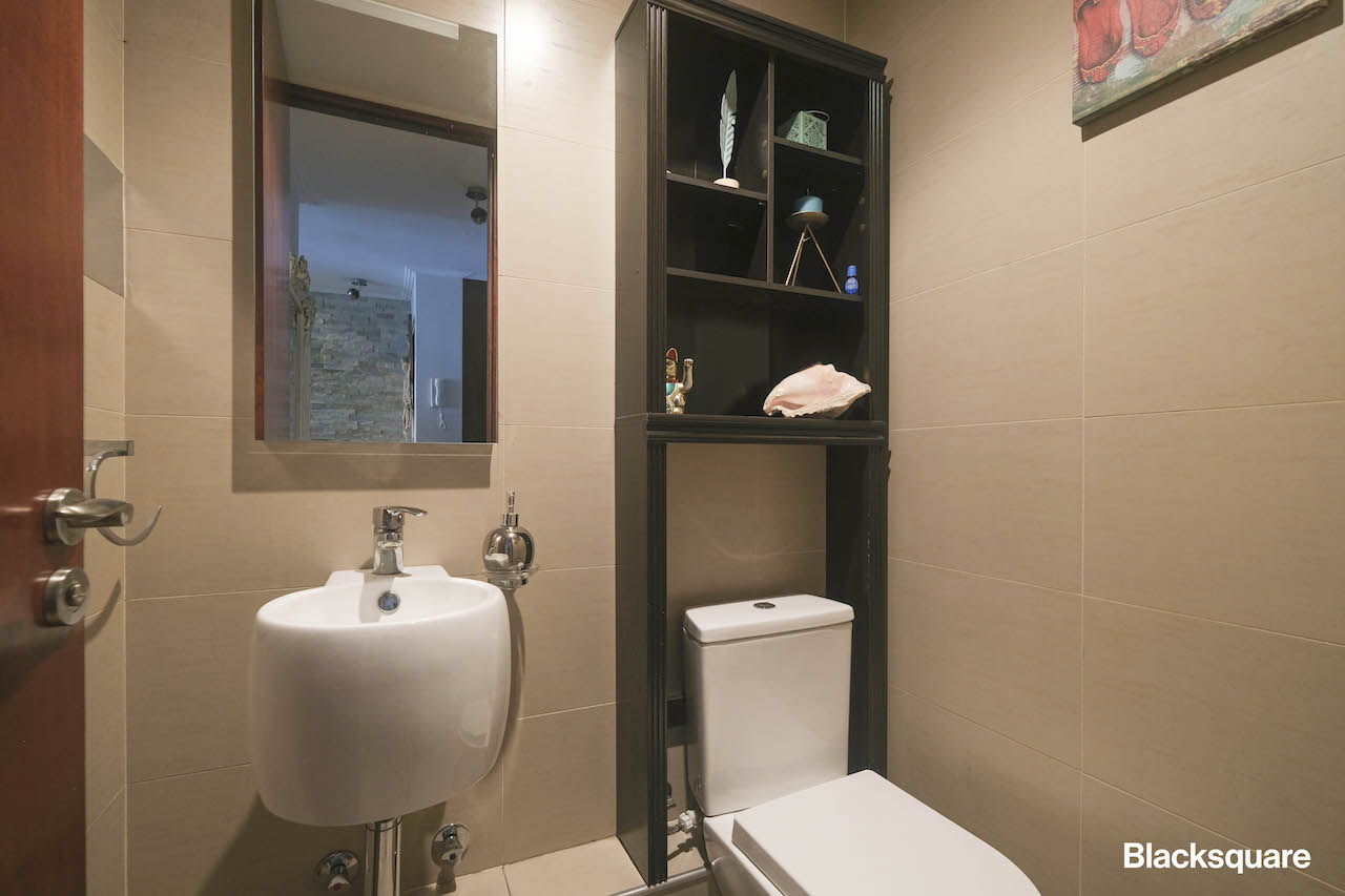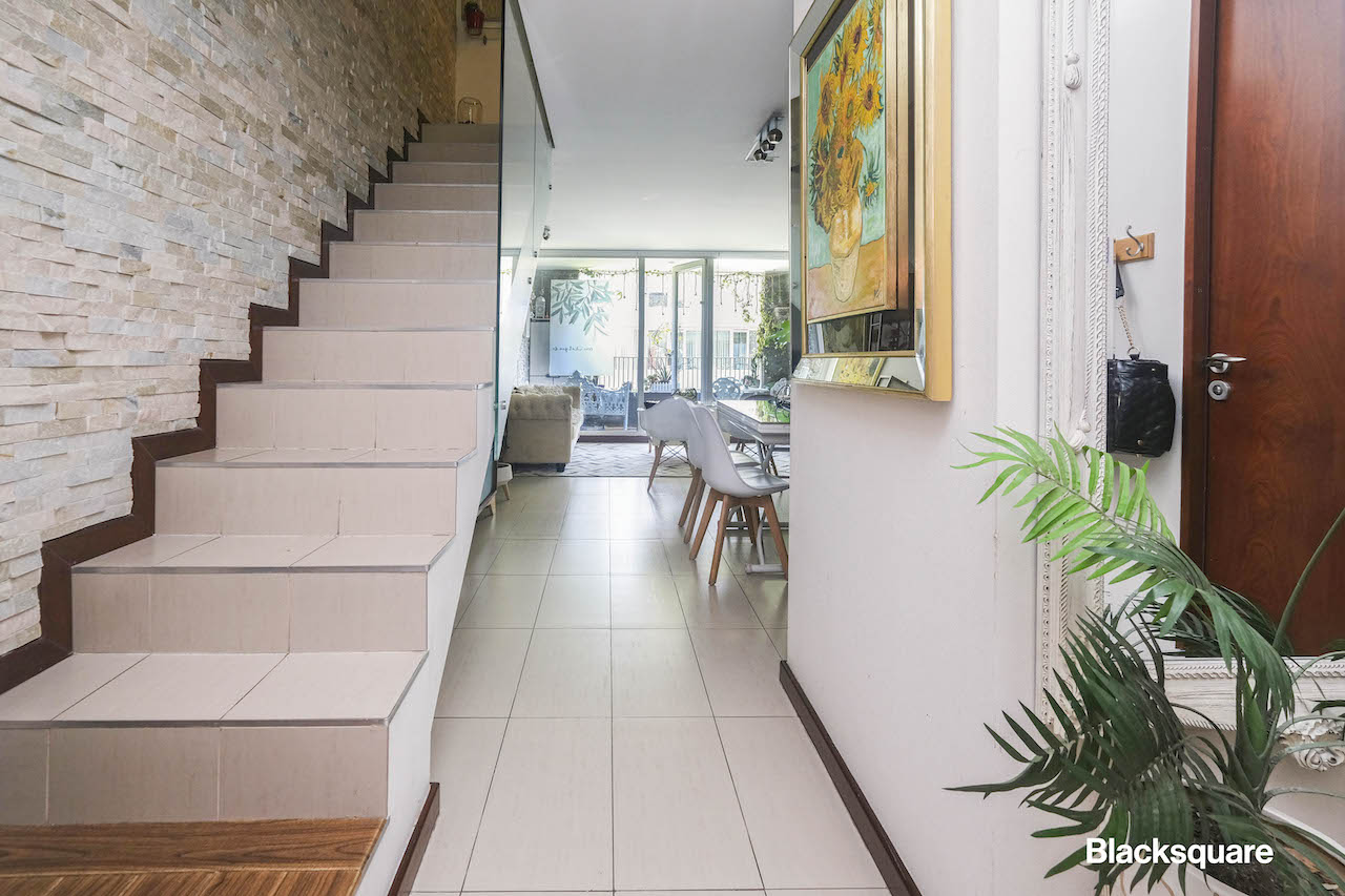 Además, está el baño de visitas y la escalera que lleva al segundo piso, en este hay una sala de estar, el dormitorio principal con su baño y el segundo dormitorio, el que también tiene baño completo.