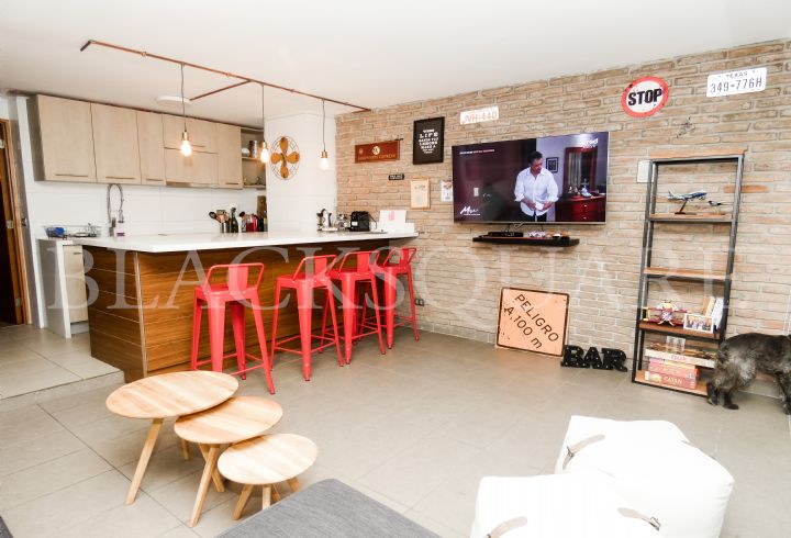 Tiene 1 dormitorio en suite, 1 dormitorio adicional con su baño, 2 estacionamientos en tandem y 1 bodega.