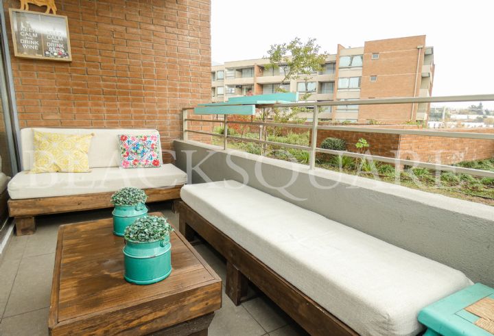 Moderno departamento ubicado en una de las zonas de mayor conectividad de La Dehesa, camino a Valle Escondido, El Arrayán. Cercano a la costanera norte, edificios de oficinas, El departamento fue remodelado por lo que tiene un gran estilo de vanguardia, con cocina americana, mesón de cuarzo y equipamiento completo full electric. Cuenta con calefactores murales, piso flotante y ventanas con termopanel.