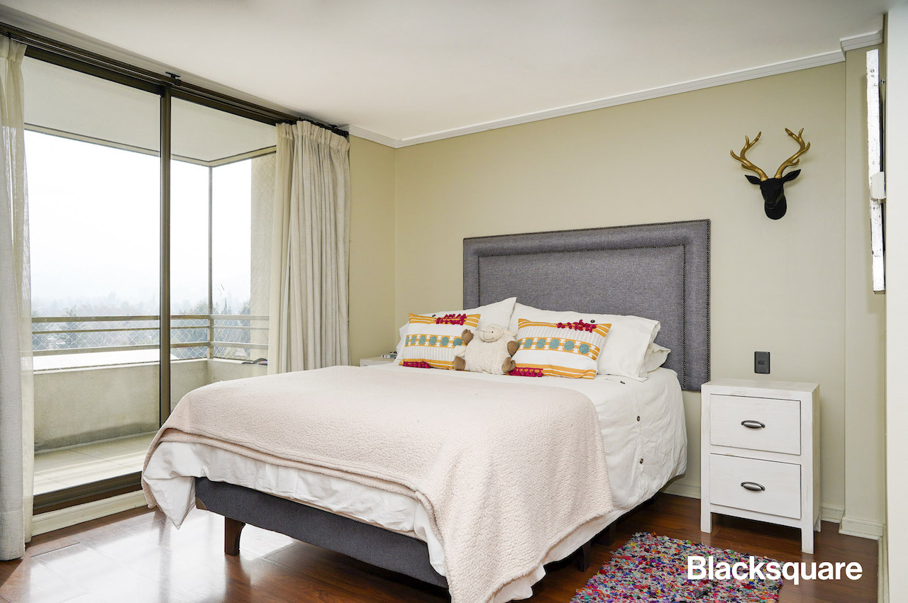 Luego, hacia los dormitorios, en el primer nivel está el dormitorio principal en suite y con walk in closet. Finalmente tenemos dos adicionales en el segundo nivel, los que comparten un baño. Además, hay una gran terraza con vista despejada sur poniente.