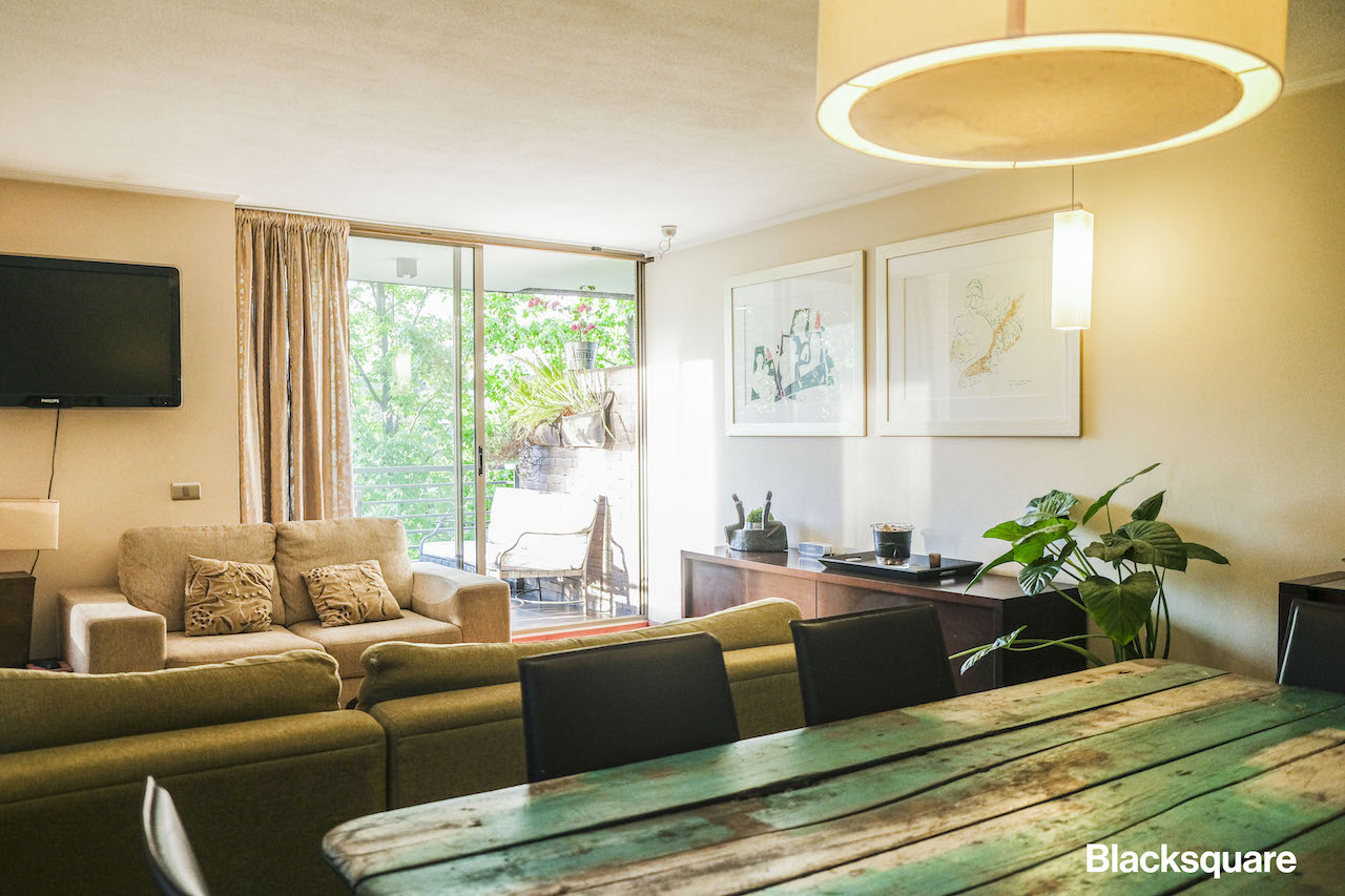 El living comedor, con finas terminaciones tiene acceso a una amplia terraza con vista norte, la que es despejada y asegurada.