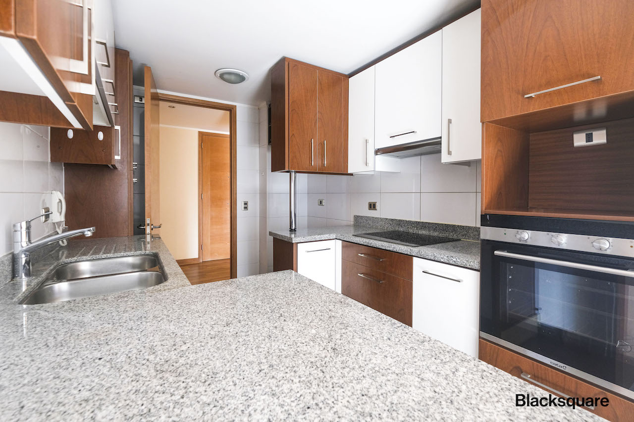 Cuenta con un hall de entrada, el que lleva al amplio living comedor independiente, con salida a una gran terraza con vista despejada nororiente. Luego se encuentra la cocina, la que está totalmente equipada y con finas terminaciones. Además, tiene una amplia logia.