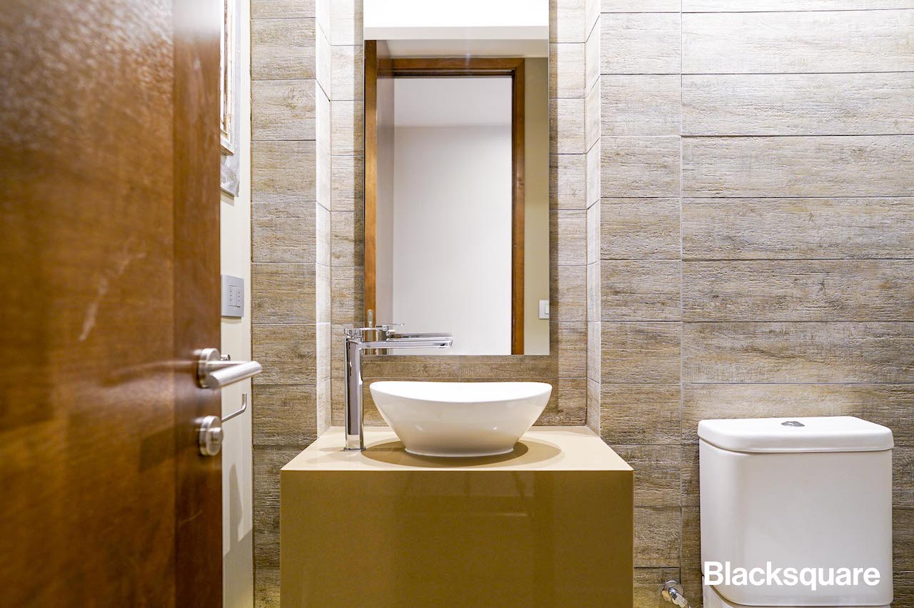 Al departamento se accede a través de un hall, el que nos conduce a un amplio living comedor, con baño de visitas y con acceso a una gran terraza (con cierre de cristal), la que recorre todo el departamento. Luego, está la cocina, de gran tamaño con comedor de diario y logia.