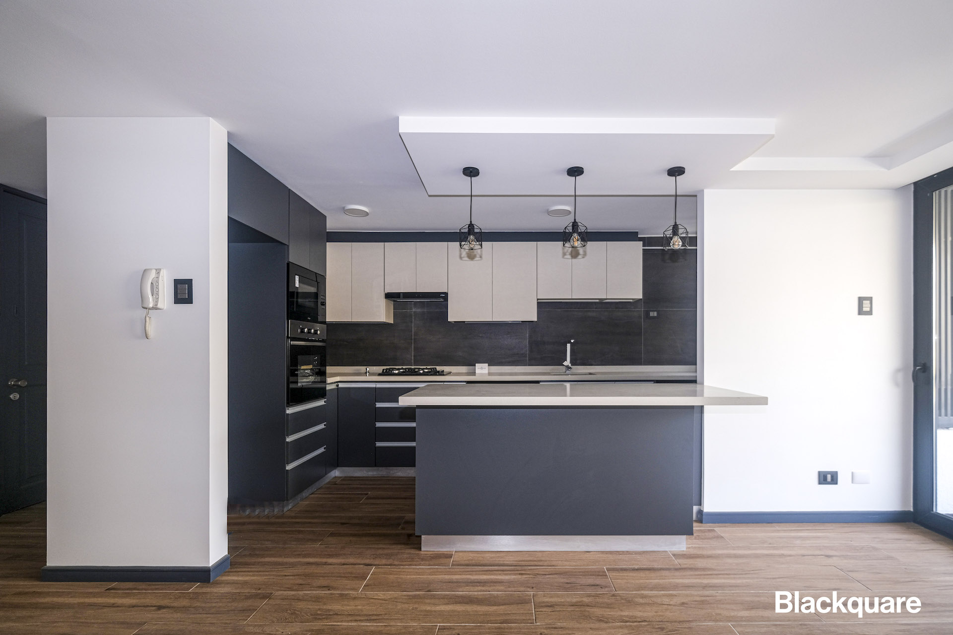 Se ingresa a un amplio living comedor, el que se extiende a la gran cocina americana, esta última completamente equipada y con logia. Además, el living se integra a una amplia terraza, con orientación suroriente.