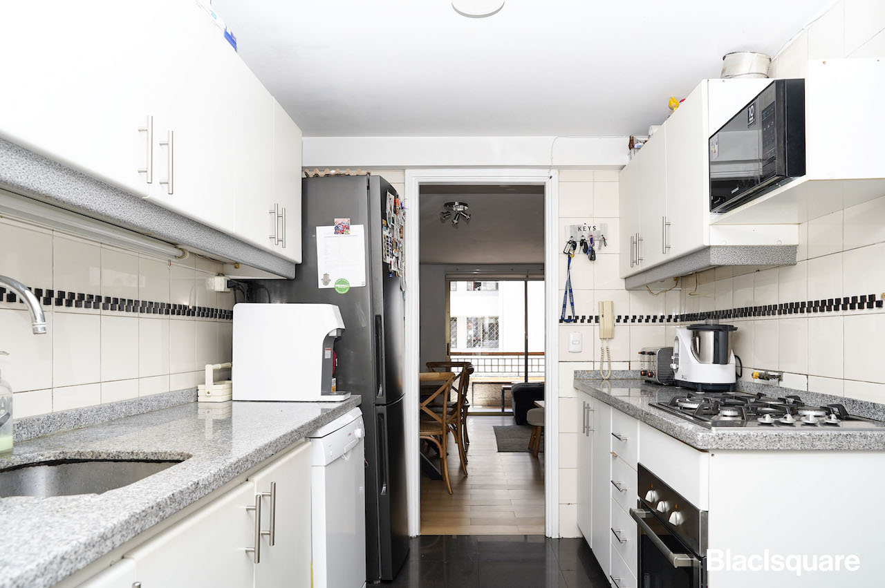 Se accede al departamento con un hall, el que nos lleva a living comedor, de cómodas dimensiones y con terraza. Luego está la cocina, con logia y dormitorio de servicio con su baño.