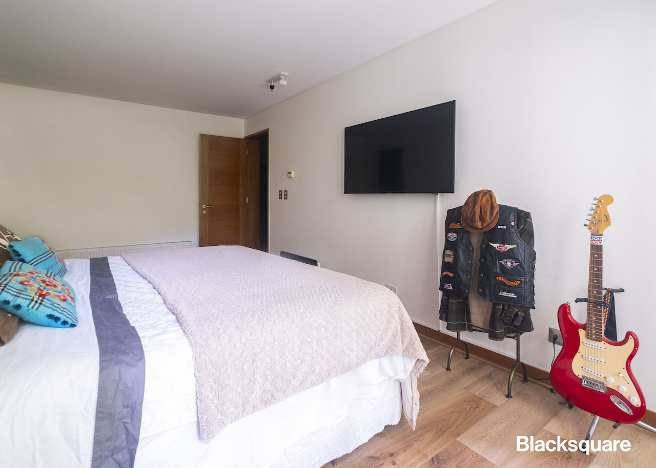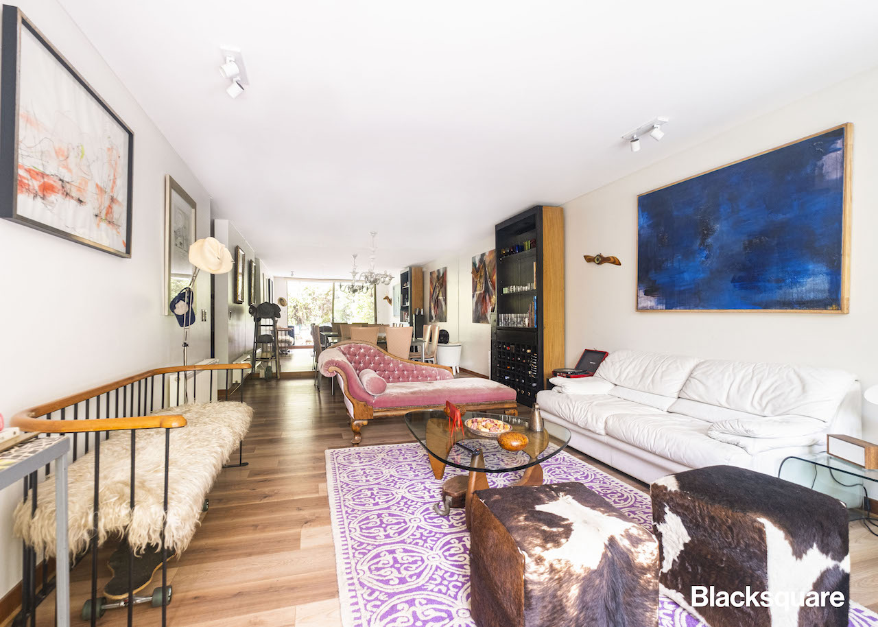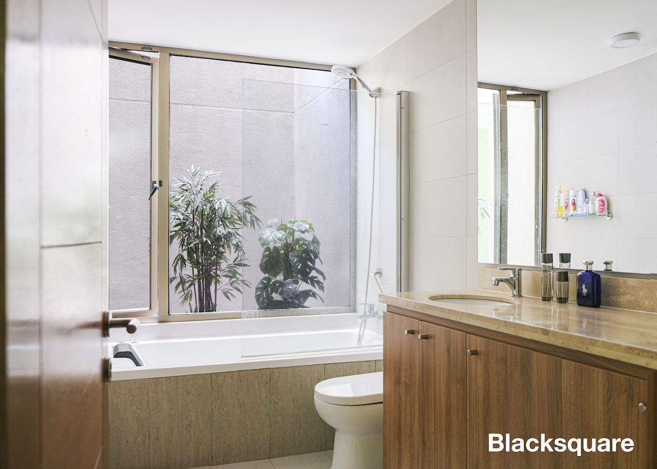 Cuenta con un amplio living comedor, con salida a una terraza que se extiende a una segunda terraza, emplazada en el gran jardín, en que este último se mezcla con los parques del edificio, con senderos que llevan a una piscina inmersa en la naturaleza.