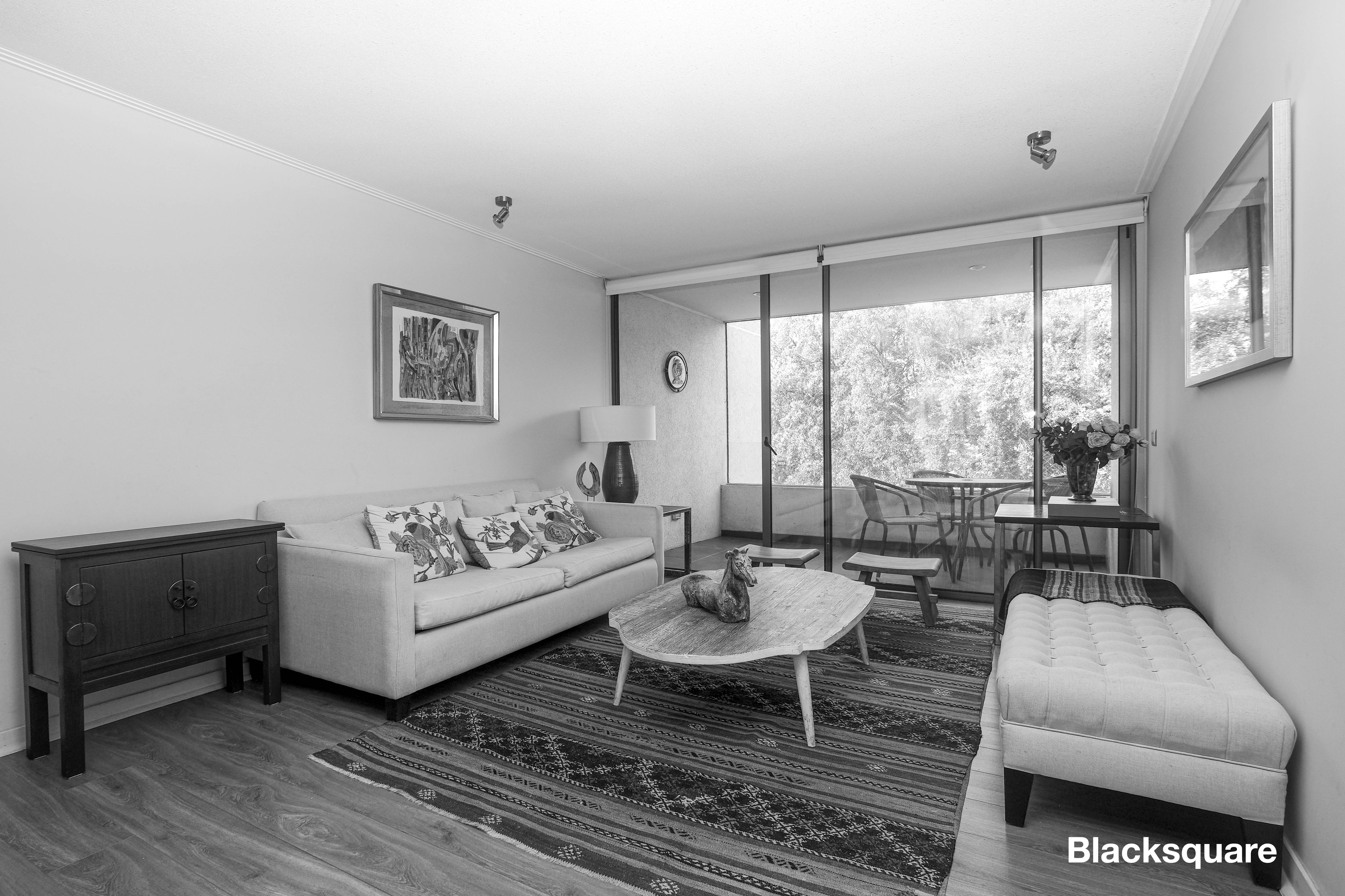 Acogedor departamento seminuevo (2016) ubicado en tranquila zona de San Carlos de Apquindo. Destaca el que está inmerso en un parque, próximo a una lagunas con aves silvestres. De carácter familiar, ideal para que los niños puedan jugar con toda libertad en medio de la naturaleza.