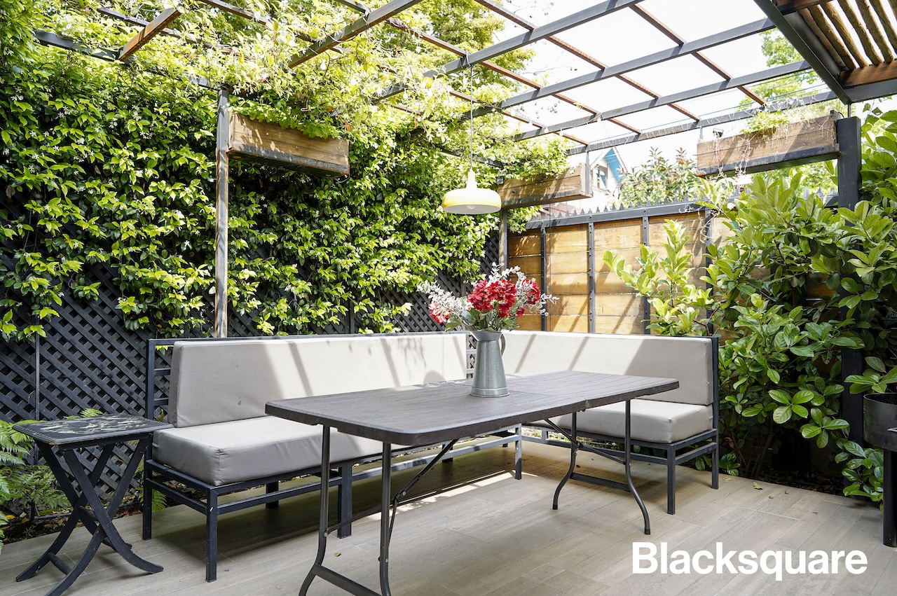 Ingresando a la casa, nos encontramos con una cómoda terraza. Para luego ingresar al living, el que está separado del comedor. Este último fue remodelado e incorporado con la cocina (tipo americana), generando un espacio acogedor family room. Además, cuenta con dormitorio y baño de servicio. Para concluir, nos encontramos con un jardín con una terraza.