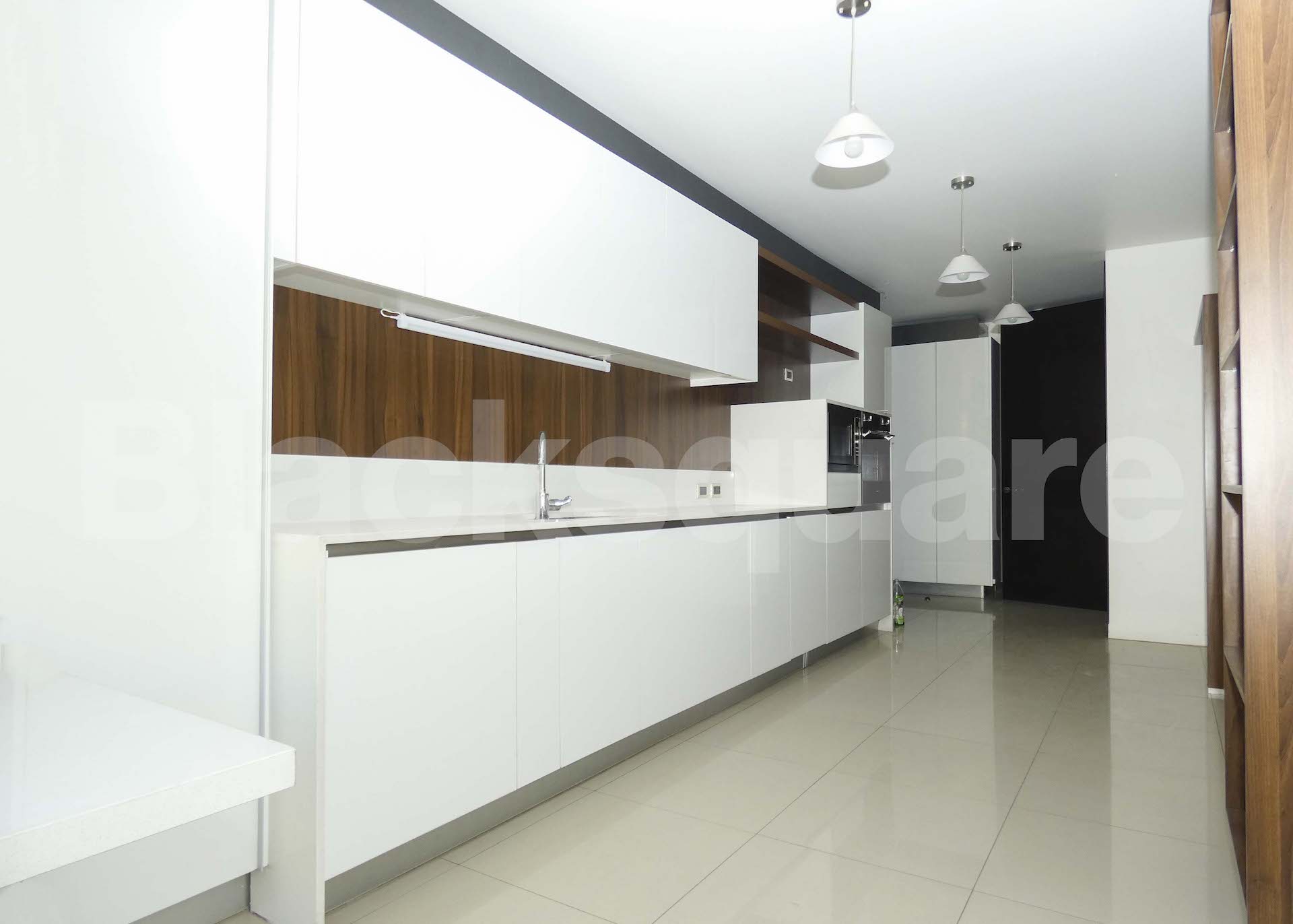 El amplio departamento tiene un gran living comedor con baño de visitas y acceso a la cocina, la que tiene loggia y pieza de servicio con su baño. Tiene 3 grandes dormitorios, cada uno con su baño. Además, se destaca su cómoda sala de estar.